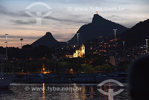 Marina da Gloria (Marina of Gloria) with the Nossa Senhora da Gloria do Outeiro Church (1739) and Christ the Redeemer in the background - Rio de Janeiro city - Rio de Janeiro state (RJ) - Brazil