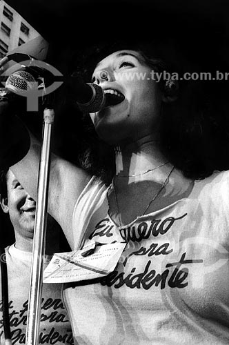 •  Subject: Christiane Torloni at the Comicio das Diretas in front of Nossa Senhora da Candelaria Church / Place: Rio de Janeiro city - Rio de Janeiro state (RJ) - Brazil / Date: 04/1984