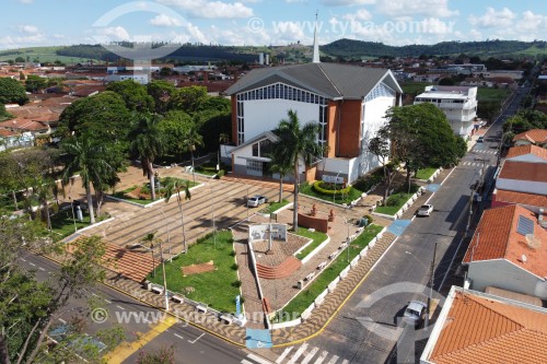Picture taken with drone of the Sanctuary of Our Lady of Aparecida in Padre Donizetti Square - Place where his mortal remains are deposited - Caminho da Fe Circuit - Tambau city - Sao Paulo state (SP) - Brazil