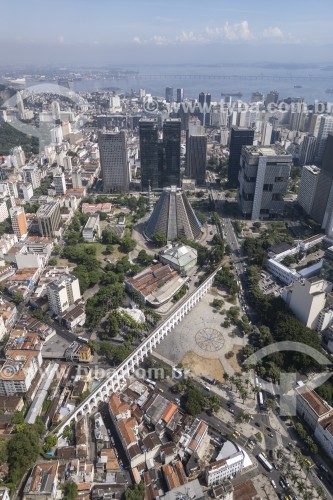 Picture taken with drone of the Lapa Arches, Circo Voador, Fundicao Progresso and the Cathedral of Sao Sebastiao do Rio de Janeiro - Rio de Janeiro city - Rio de Janeiro state (RJ) - Brazil