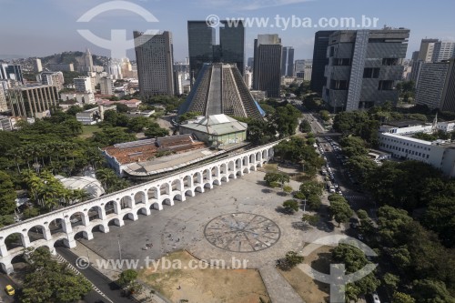 • Picture taken with drone of the Lapa Arches, Circo Voador, Fundicao Progresso and the Cathedral of Sao Sebastiao do Rio de Janeiro - Rio de Janeiro city - Rio de Janeiro state (RJ) - Brazil