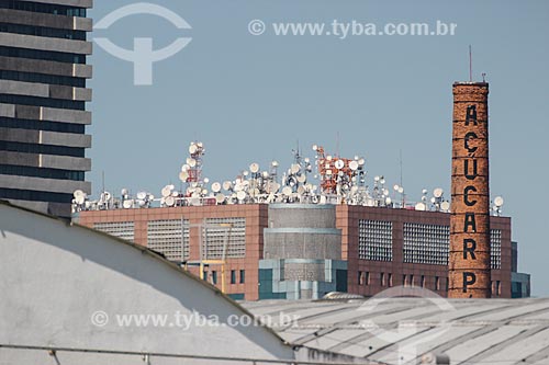 Detail of antennas - Teleporto of Rio de Janeiro city with chimney of Perola Sugar old factory to the right - Rio de Janeiro city - Rio de Janeiro state (RJ) - Brazil