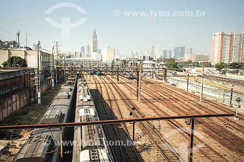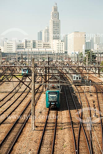 View of snippet of railway of the Supervia - rail transport services concessionaire - with the Central do Brasil Train Station in the background - Rio de Janeiro city - Rio de Janeiro state (RJ) - Brazil