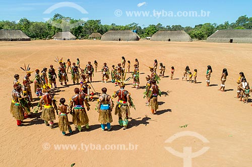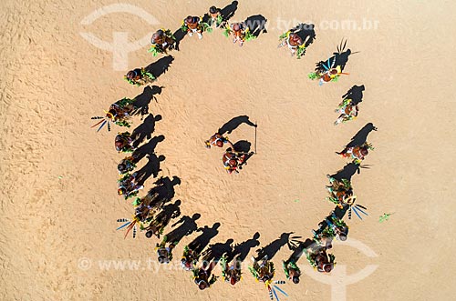 •  Picture taken with drone of men in a circle during the Tapanawana dance - also known as Fish Festival - Aiha village of the Kalapalo tribe - INCREASE OF 100% OF THE VALUE OF TABLE  - Querencia city - Mato Grosso state (MT) - Brazil