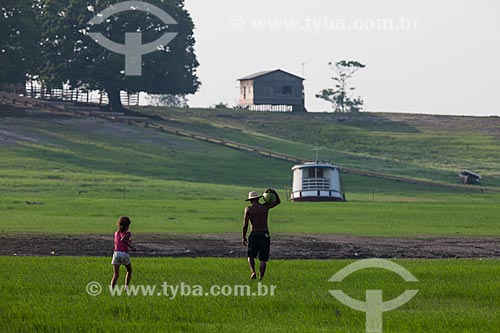 Riverine carrying watermelon during dry season of Amazon River - Manaus city - Amazonas state (AM) - Brazil