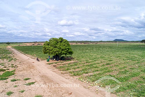 Picture taken with drone of watermelon (Citrullus lanatus) plantation irrigated with water collected from the São Francisco River - Cabrobo city - Pernambuco state (PE) - Brazil
