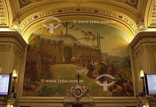 Plenary of Pedro Ernesto Palace (The building houses the Municipal Chamber of the Rio de Janeiro city, since march, 1977), with the panel "Fundacao da Cidade do Rio de Janeiro no Morro do Castelo" (Foundation of the City of Rio de Janeiro - Rio de Janeiro city - Brazil