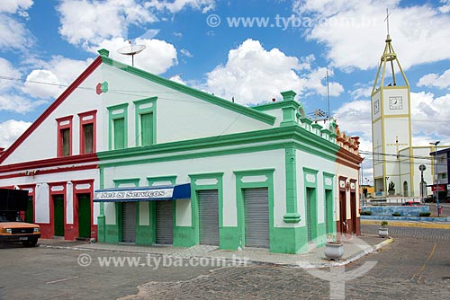 Old commercial historic houses - Princesa Isabel city center neighborhood with the Our Lady of Good Council Church in the background - Princesa Isabel city - Paraiba state (PB) - Brazil