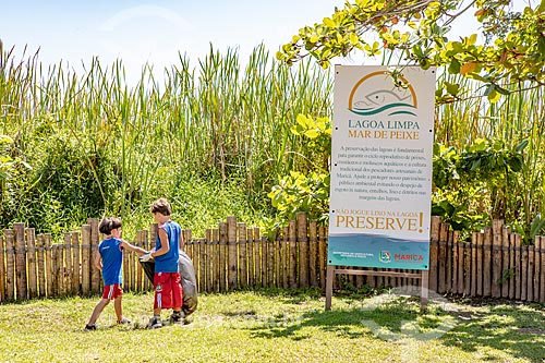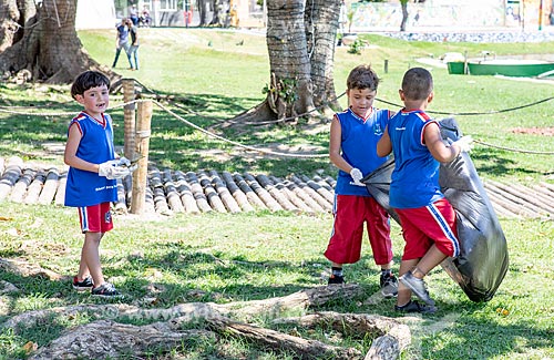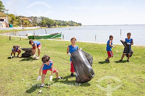 •  Children collecting leaves and garbage around the Aracatiba Lagoon - Clean Lagoon, Sea of Pisces Project - Secretariat of Agriculture, Livestock and Fisheries of the Municipality of Marica  - Marica city - Rio de Janeiro state (RJ) - Brazil