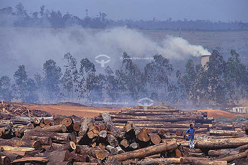 •  Deforestation - Mahogany trunks at sawmill at Paragominas city - Para state - Brazil
