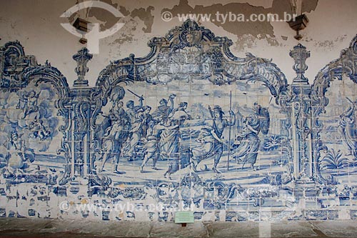 Detail of the portuguese tiles inside of cloister of Sao Francisco Convent and Church (XVIII century) - Salvador city - Bahia state (BA) - Brazil