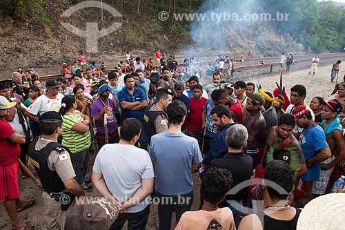 •  Indians of Krenak tribe closing Vale do Rio Doce Company railroad - protest to Doce River pollution after dam rupture of the Samarco company mining rejects in Mariana city (MG)  - Resplendor city - Minas Gerais state (MG) - Brazil