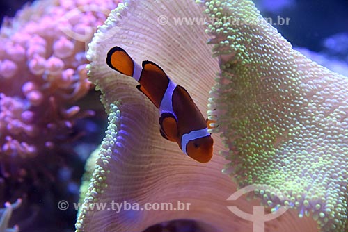 Detail of clownfish (Amphiprion ocellaris) - AquaRio - marine aquarium of the city of Rio de Janeiro - Rio de Janeiro city - Rio de Janeiro state (RJ) - Brazil