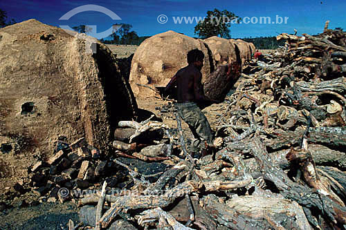 •  Firewood and charcoal burner, one important cause of loss of vegetation in Brazil - Jequitinhonha Valley - Minas Gerais state - Brazil