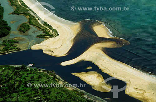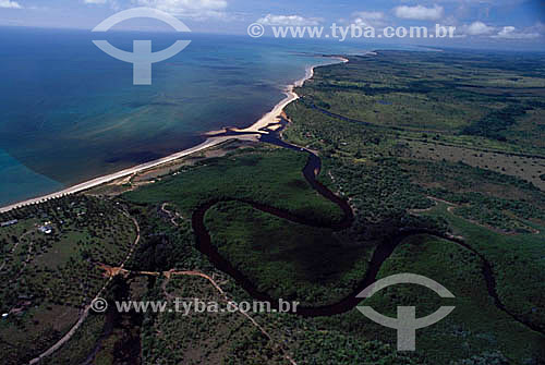 Aerial view of "Barra do Caí" (Bar of Caí)*, where Pedro Alvares Cabral ordered Nicholas Coelho to go in a canoe for the first meeting between the Portuguese and the native Indian in the afternoon of 23 of April of 1500 - Southern coast of Bahia Sta