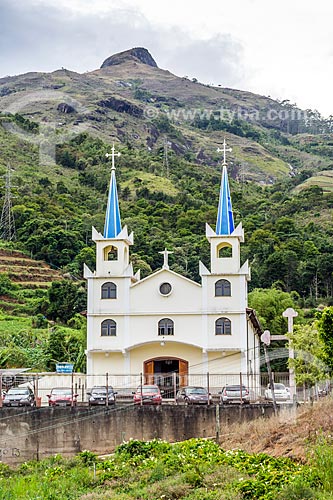 Facade of the Our Lady of Penha Church - Tres Pedras neighborhood - with the Cobicado Hill (Coveted Hill) in the background - Petropolis city - Rio de Janeiro state (RJ) - Brazil