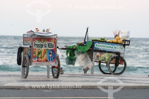 Street vendors of green corn and caipirinha and drinks - Copacabana Beach - Rio de Janeiro city - Rio de Janeiro state (RJ) - Brazil