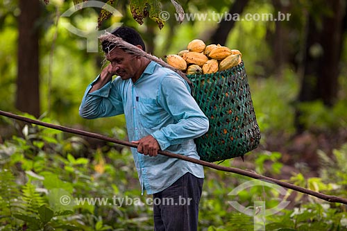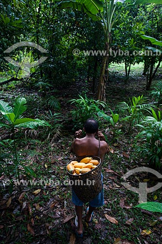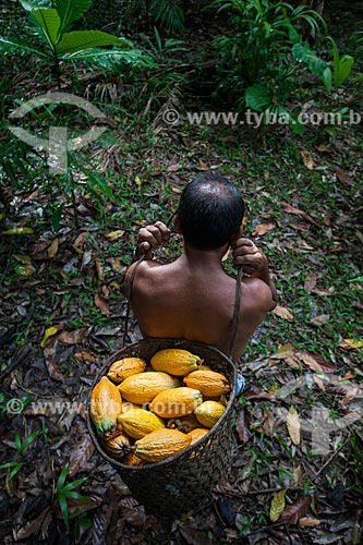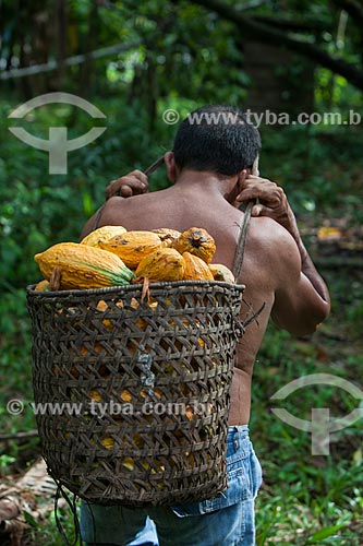 •  Rural worker carrying native cacao - Madeira River region  - Novo Aripuana city - Amazonas state (AM) - Brazil