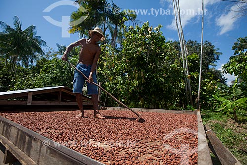 Farmer during the native cacao drying - Madeira River region - Amazonas state (AM) - Brazil