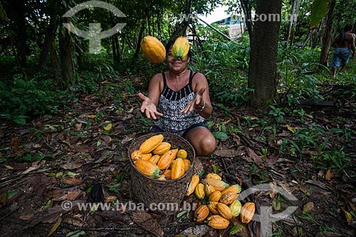 •  Woman rural worker during harvest of the native cacao - Madeira River region  - Novo Aripuana city - Amazonas state (AM) - Brazil