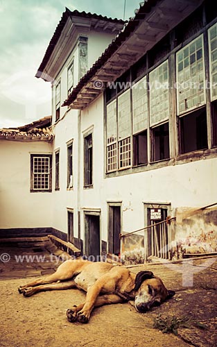 Dog sleeping in the headquarter of Santa Clara Farm - considered one of the largest farm in the XIX century - Santa Rita de Jacutinga city - Minas Gerais state (MG) - Brazil