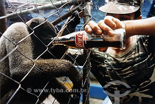 •  Subject: Soldier giving Coke to a monkey in Manaus military zoo / Place: Manaus city - Amazonas state - Brazil / Date: 1987
