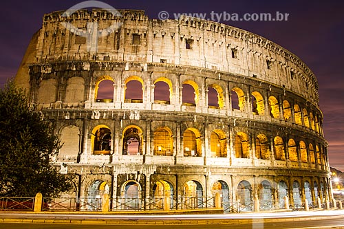 •  Facade of the Coliseum - also known as the Flavian Amphitheatre - at night  - Rome - Rome province - Italy