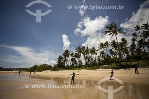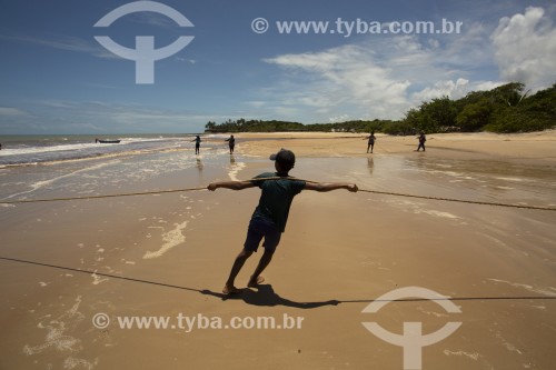 Fishermen collecting fishing net - Riacho Beach - Prado city - Bahia state (BA) - Brazil