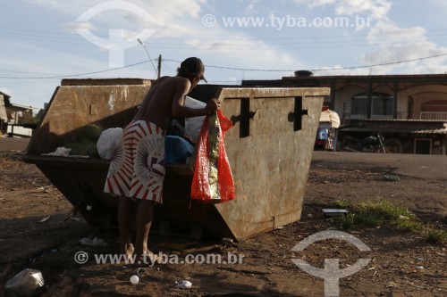 • Man collecting leftover garbage in an iron dumpster - Iranduba city - Amazonas state (AM) - Brazil