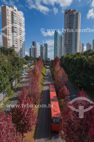 • Deputado Heitor Alencar Furtado Street with flowering trees - Curitiba city - Parana state (PR) - Brazil