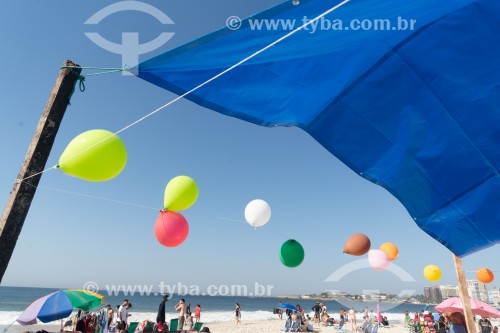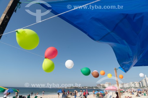 Trade stall on the edge of Copacabana Beach with balloon decoration - Rio de Janeiro city - Rio de Janeiro state (RJ) - Brazil