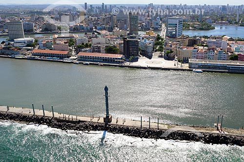 Aerial photo of the Sculpture Park - Recife Port estuary - with the Rio Branco Square - also know as Ground Zero - in the background - Recife city - Pernambuco state (PE) - Brazil