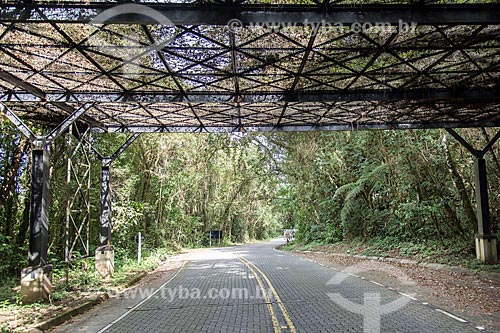 Metallic cover to contain tree fall on the Highway (RJ-165) Comendador Antonio Conti Park Road - Paraty-Cunha Park Road - Old Royal Road of the Caminho do Ouro - Paraty city - Rio de Janeiro state (RJ) - Brazil