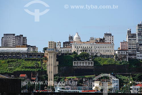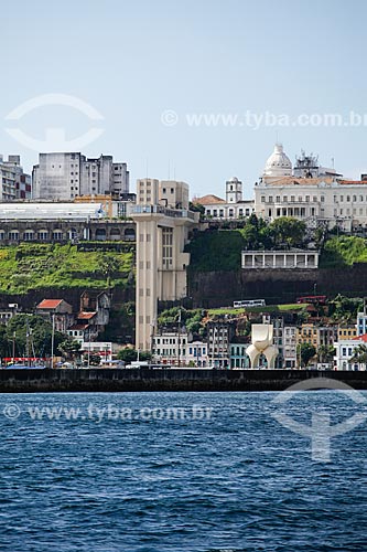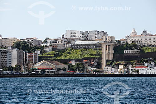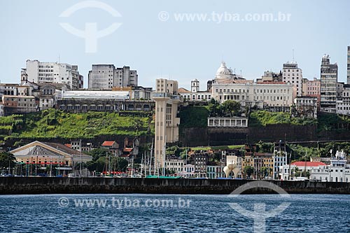 View of Elevador Lacerda (Lacerda Elevator) - 1873 - from Todos os Santos Bay - Salvador city - Bahia state (BA) - Brazil