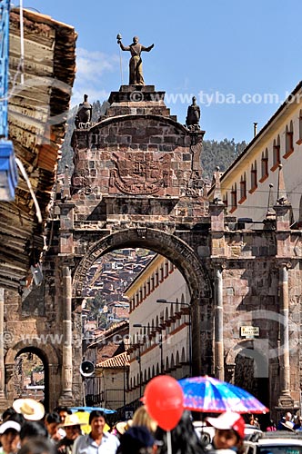 •  People passing by the Santa Clara Arch during Inti Raymi - Inca civilization religious festival in honor of Inti, the sun god, which marks the winter solstice  - Cusco city - Cusco Department - Peru