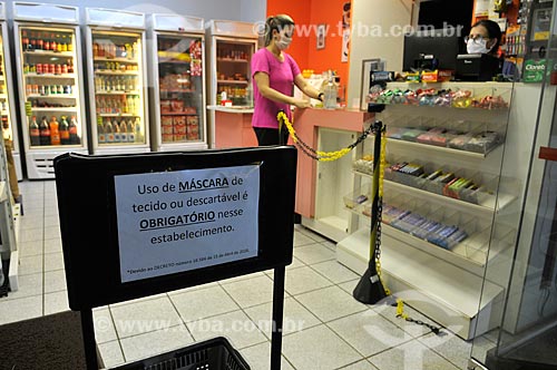 •  Sign indicating the mandatory use of a protective mask inside commercial establishments - Coronavirus Crisis  - Sao Jose do Rio Preto city - Sao Paulo state (SP) - Brazil