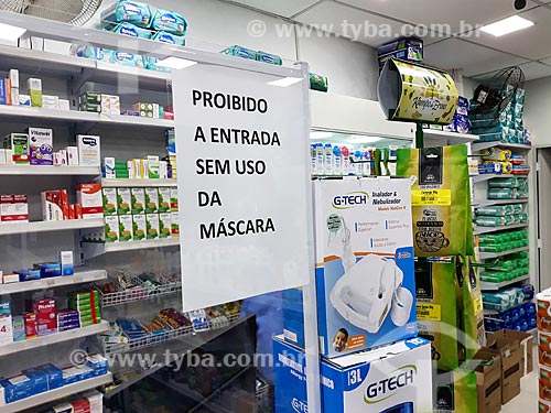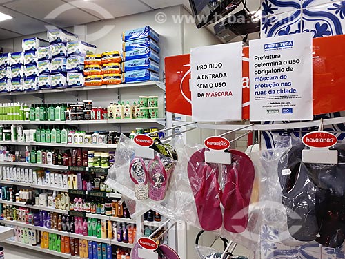 •  Sign indicating the mandatory use of a protective mask inside commercial establishments - Coronavirus Crisis  - Rio de Janeiro city - Rio de Janeiro state (RJ) - Brazil
