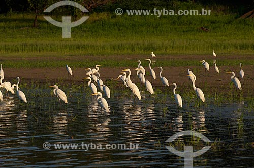 Subject: Great Egret (Ardea alba) at the margin of the Mamiraua lake - Mamiraua Sustainable Development Reserve / Place: Amazonas state - Brazil / Date: 2007