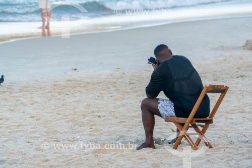 Man using smartphone on Copacabana Beach - Rio de Janeiro city - Rio de Janeiro state (RJ) - Brazil