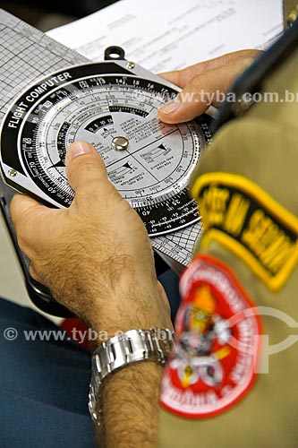 Pilot tracing the flight plan with the help of a flight computer - Porto Velho city - Rondonia state (RO) - Brazil