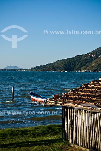 Boat moored at Conceicao Lagoon - Florianopolis city - Santa Catarina state (SC) - Brazil