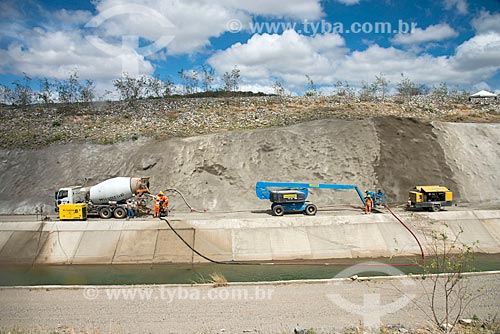 •  Labourer repairing the concrete on the walls of the channel of the Project of Integration of Sao Francisco River with the watersheds of Northeast setentrional - east axis  - Sertania city - Pernambuco state (PE) - Brazil