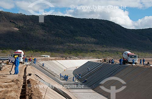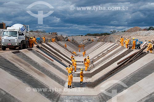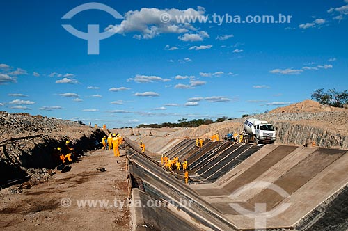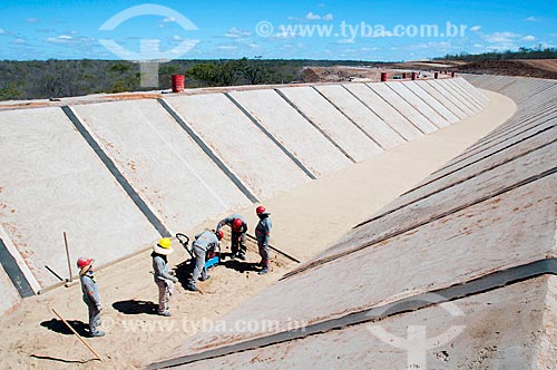 •  Subject: Men working in irrigation channel - Project for Integration of the Sao Francisco River with the watersheds of the Septentrional Northeast / Place: Salgueiro city - Pernambuco state (PE) - Brazil / Date: 08/2010