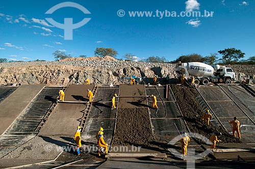 •  Labourer repairing the concrete on the walls of the channel of the Project of Integration of Sao Francisco River with the watersheds of Northeast setentrional - east axis  - Sertania city - Pernambuco state (PE) - Brazil