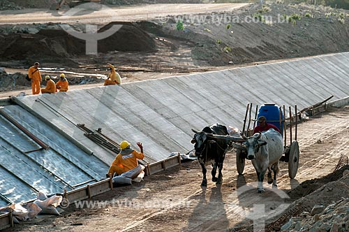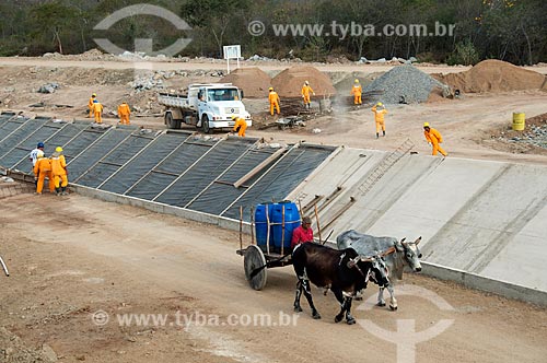 •  Subject: Ox cart passing by the works of the irrigation channel -  Project for Integration of the Sao Francisco River with the watersheds of the Septentrional Northeast / Place: Sertania city - Pernambuco state (PE) - Brazil / Date: 08/2010
