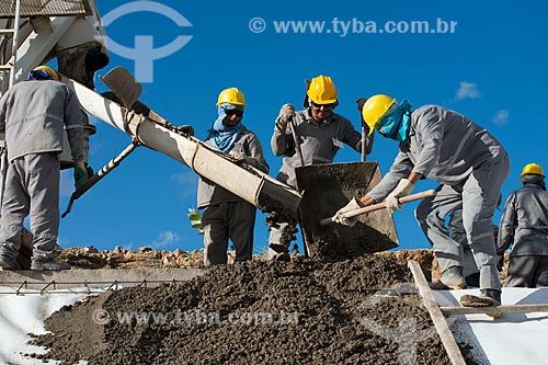 Concrete mixer delivering concrete in building construction - Sao Paulo city - Sao Paulo state (SP) - Brazil