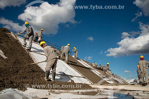 •  Subject: Men working in irrigation channel - Project for Integration of the Sao Francisco River with the watersheds of the Septentrional Northeast  / Place: Sertânia city - Pernambuco state (PE) - Brazil / Date: 08/2010