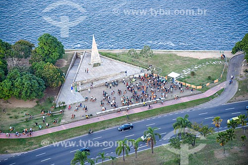 Aerial photo of the cyclists - Monument to Estacio de Sa during Bike Parade promoted by Velo-City event - international conference about cycling mobility - Rio de Janeiro city - Rio de Janeiro state (RJ) - Brazil