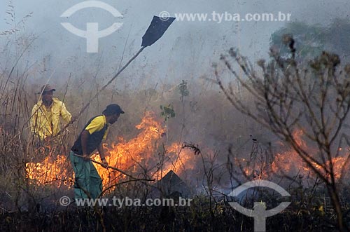 Subject: Fire fighters trying to control a conflagration at Emas National Park / Place: Goias state - Brazil / Date: 17/09/2007