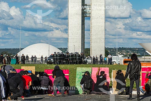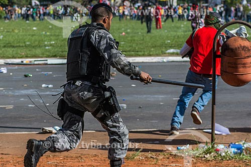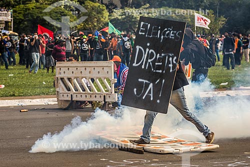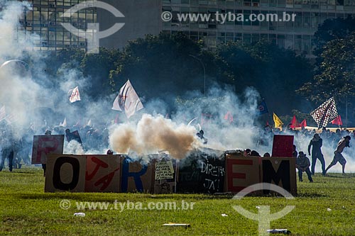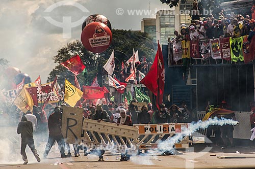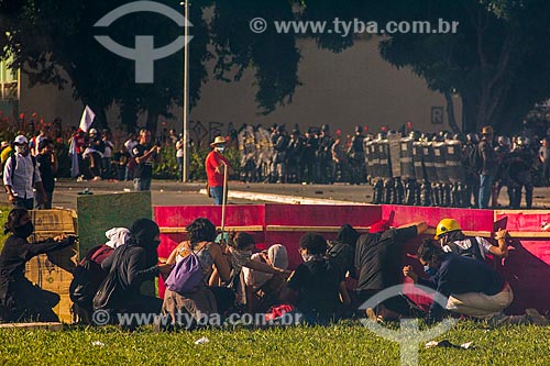 •  Confrontation between demonstrators and the Military Police during the demonstration against the government of Michel Temer - Esplanade of Ministries  - Brasilia city - Distrito Federal (Federal District) (DF) - Brazil
